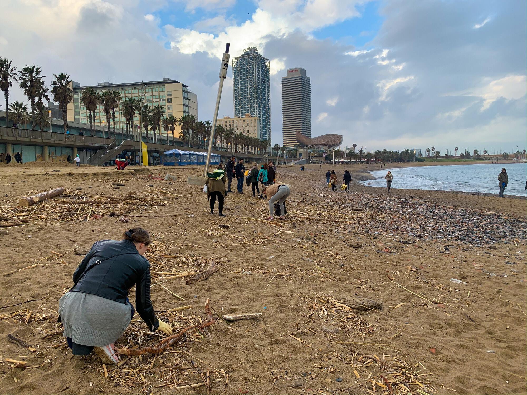 Depuis vendredi, de très nombreux Barcelonais ont répondu présents pour nettoyer le rivage recouvert de détritus après le passage de la tempête Gloria.