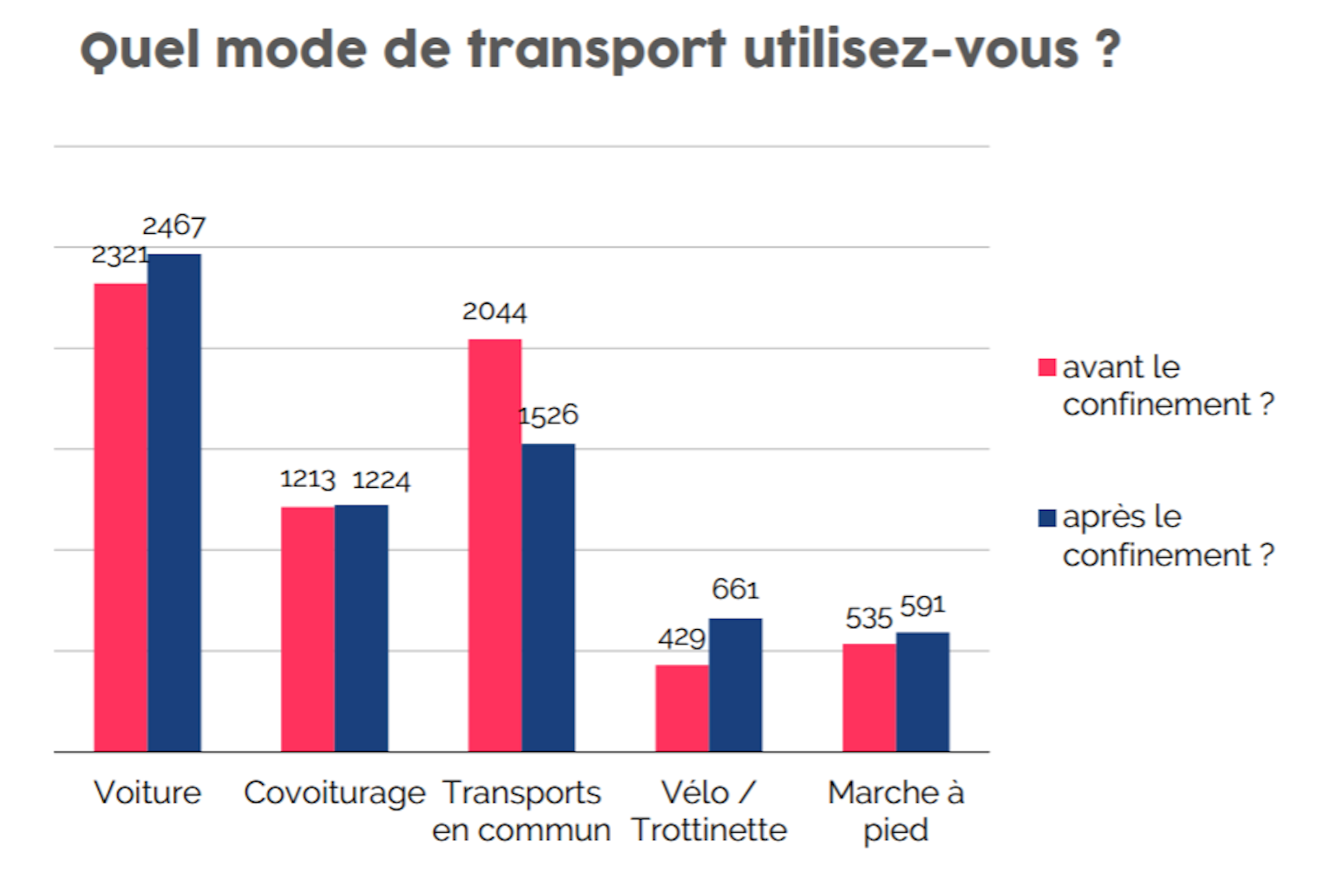 Mode de transport privilégié avant et après le confinement.