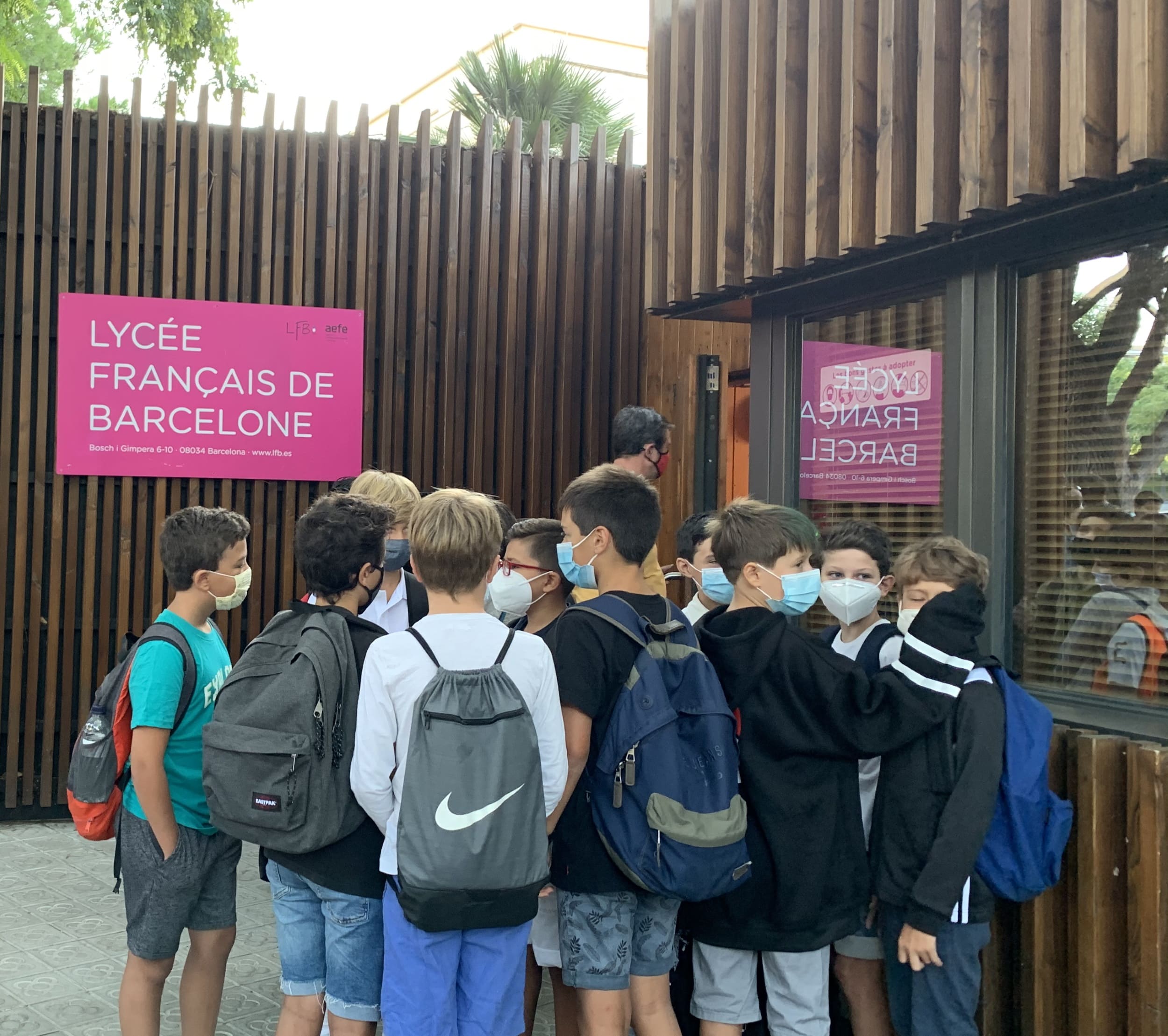 Il est 8h et les familles se massent peu à peu à l’entrée du Lycée Français de Barcelone (LFB), dans une rue calme du quartier de Pedralbes. Déjà les groupes d’enfants se forment et les rires éclatent sous les masques soigneusement disposés sur les visages. Irène, Anna, Inès et Marlène se sont connues à l’école Lesseps, l’autre établissement français de Barcelone. C’est leur première rentrée au LFB, elles entrent en sixième. “Je suis un peu nerveuse d’arriver dans une nouvelle école, mais j’ai retrouvé mes amies, donc je suis contente aussi” explique Anna en riant. “Je ne sais pas trop quoi penser car tout est nouveau, l’école, le masque, et puis il y a le coronavirus” poursuit son amie Irène.
