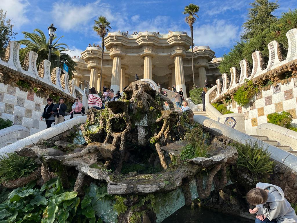 Sous alerte sécheresse depuis novembre dernier, la cité comtale se voit obligée de restreindre sa consommation d’eau potable pour entretenir ses espaces verts et points d’eau de ce type. Mais un peu plus au nord de la ville, le Park Güell, lui, dispose d’un traitement de faveur. La salamandre crache encore de l’eau et un filet d’eau ruisselle depuis le belvédère jusqu’à l’entrée.