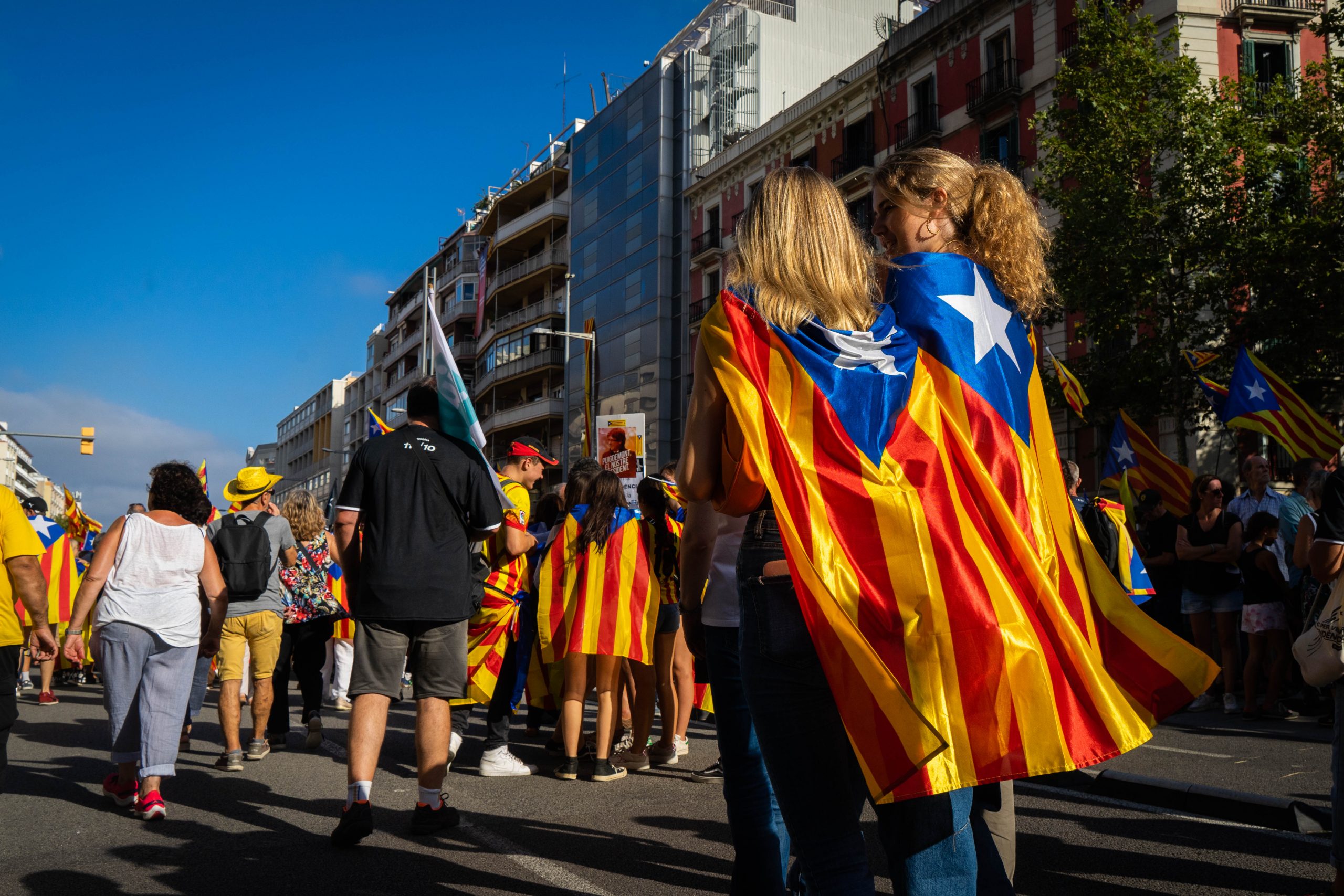 Cette année, les associations demandent à ce qu’il n’y ait aucune tractation entre les partis indépendantistes et le pouvoir espagnol afin d’investir le prochain Premier ministre. En effet, depuis les élections législatives du 23 juillet dernier, la politique espagnole est bloquée. L’égalité entre la droite et la gauche ne permet ni à un camp ni à l’autre d’investir le chef du gouvernement. Aucun des partis politiques Partido Popular (droite) ou PSOE (socialistes) ne possède la majorité absolue de 176 élus. Ce sont les indépendantistes catalans du camp de Carles Puigdemont qui ont les cartes en main. Le vote des 7 députés indépendantistes peut faire la différence. Pour investir Pedro Sanchez, Carles Puigdemont propose que les séparatistes poursuivis par la justice dans le cadre de la déclaration d’indépendance de 2017 soient amnistiés par une loi.