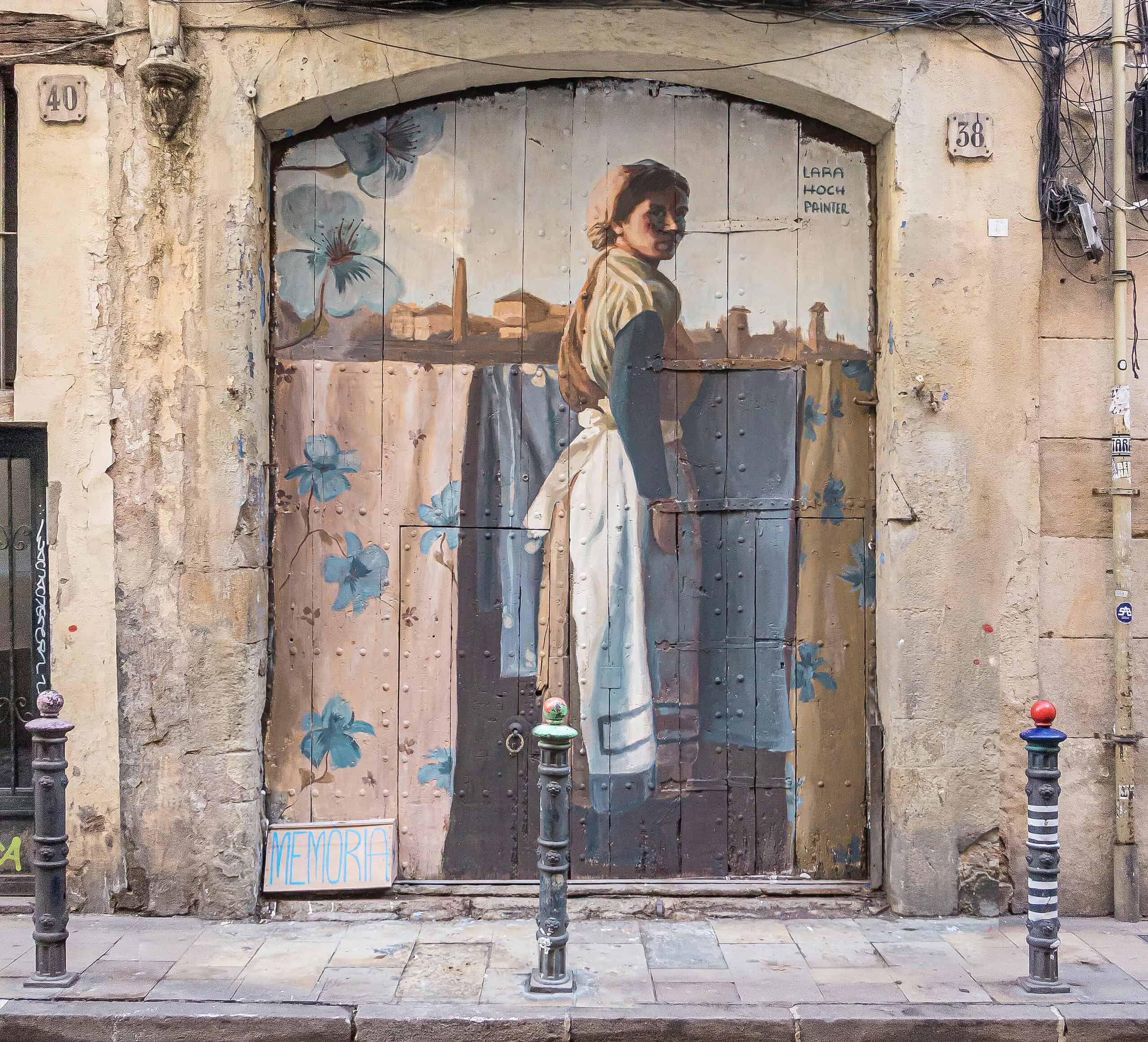 Les œuvres, réalisées sur portes et persiennes, s’inspirent directement de l’histoire de la rue. « Le street art peut dialoguer avec l’histoire sans l’effacer, au contraire, il la rend visible », ajoute-t-il avec conviction. Chaque peinture évoque les anciens artisans et métiers qui ont façonné la vie de la Carrer de Carders, donnant au visiteur l’impression de marcher dans le passé. Mille ans après sa création, la rue reste fidèle à son identité : un lieu qui vit, travaille et transmet son héritage artisanal et populaire.