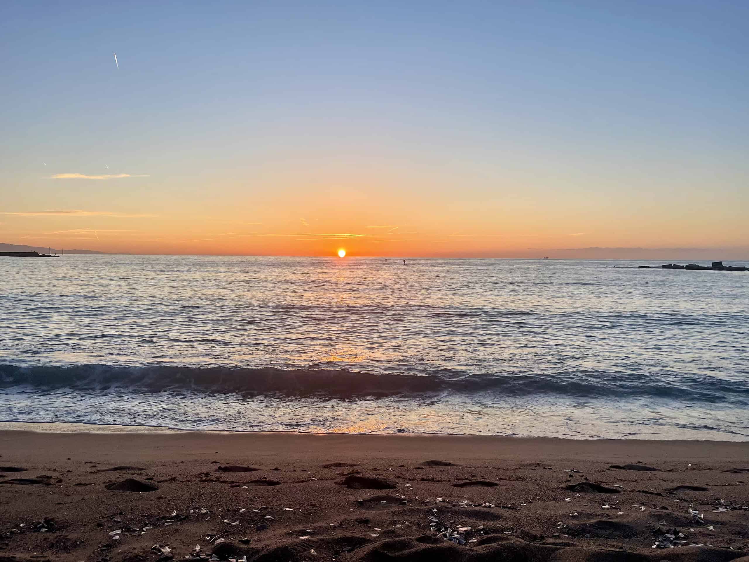 Quand la ville dort encore, la plage de Barcelone se transforme en un espace presque captivant, un lieu de rendez-vous silencieux pour les lève-tôt. Des runners, des cyclistes, des yogis et certains jours, des nageurs courageux… tous viennent contempler le nouveau jour.