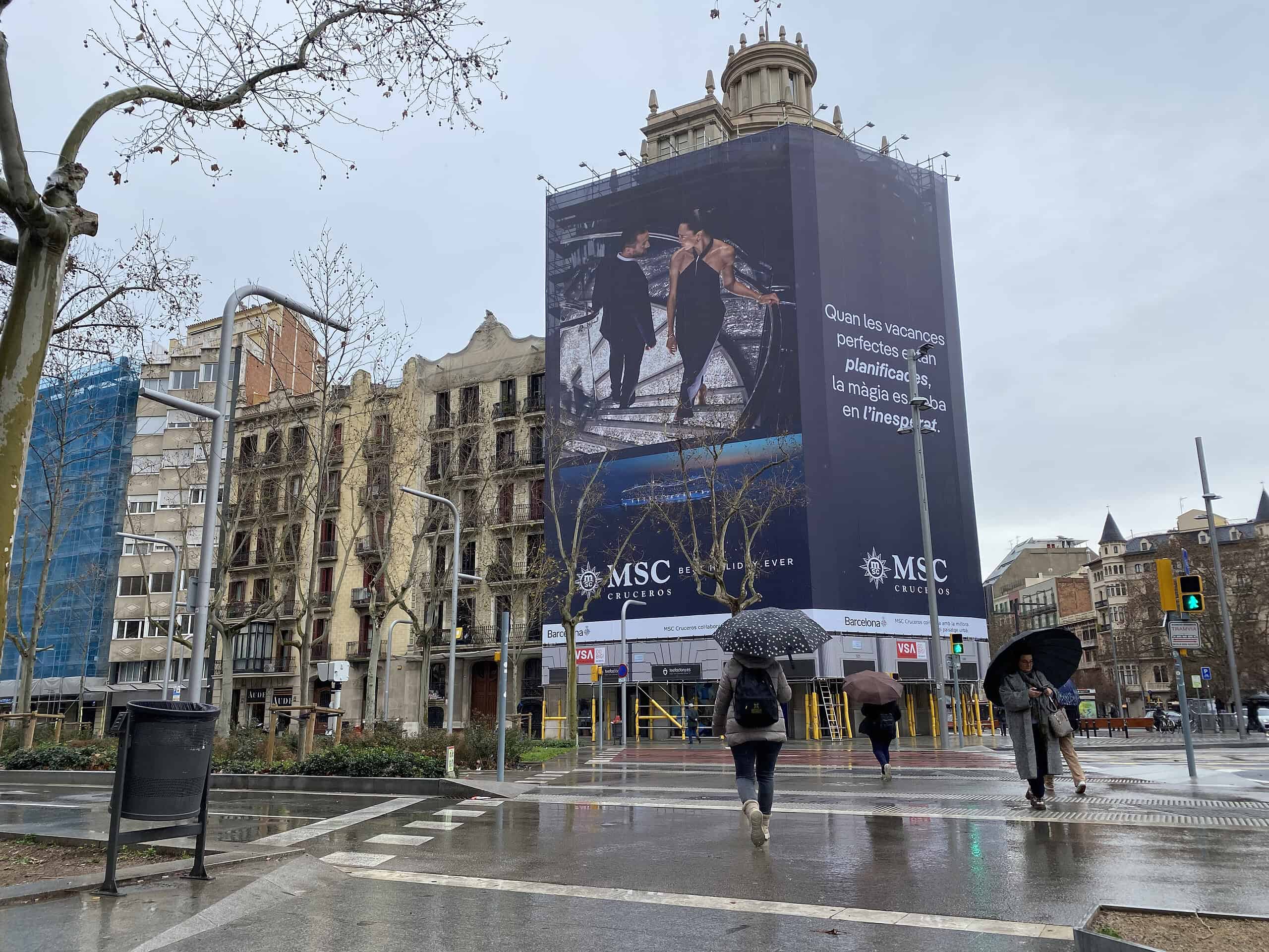 Il est seize heures dans ce cossu appartement du Passeig Sant Joan. À cette heure-là, la lumière du jour devrait encore éclairer les pièces, mais les lampes sont déjà allumées, donnant l’impression d’une fin de soirée prématurée. Derrière les fenêtres, une immense bâche publicitaire recouvre entièrement la façade de l’immeuble. Depuis l’automne 2025, la famille de Miguel, architecte à Barcelone, vit derrière cette annonce géante, remplacée au fil des campagnes, parfois plus claire, souvent plus sombre. Une situation devenue de plus en plus courante dans les grandes villes, où le coût élevé des rénovations pousse les copropriétés à accepter ce type de financement.