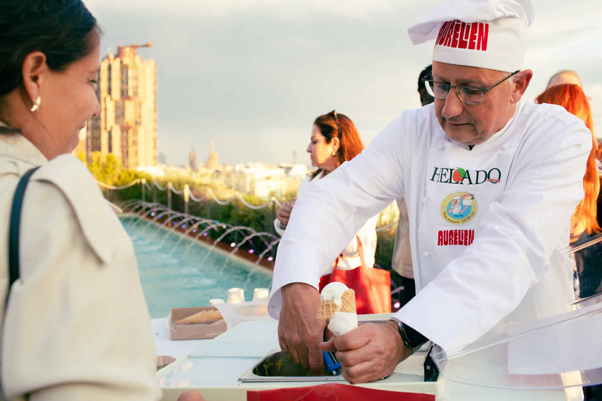 Aurélien met également son talent (et sa légendaire bonne humeur) au service des événements. Le glacier a été élu meilleure activité pour entreprises et mariages sur le site MerciChefs, et propose désormais des chariots personnalisables pour catering. L’offre inclut la création de parfums sur mesure aux couleurs d’une marque ou d’un événement.